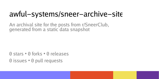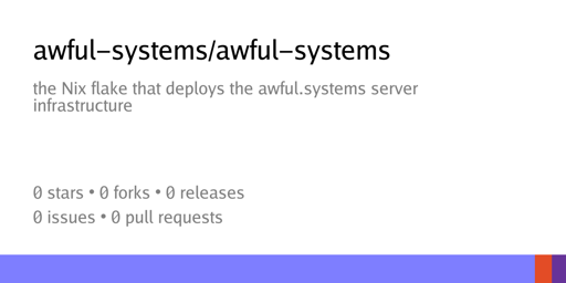 for that last bullet point, I can recommend the better parts of Mastodon – avoid the tech instances like the plague and focus in on the queer ones with techy users. our instance also has an attempt at a homegrown tech community organized around healthier principles called FreeAssembly, which never quite got off the ground because the fascist takeover of the Nix project happened right after it launched, and then ahaha everything else happened after that, and I never got the chance to kick off that community properly. I still recommend Mastodon because it’s established, but if you’d like the same experience as here but in a community more oriented towards posting about personal projects or programming in general, FreeAssembly might be worth a try. I’m finally finishing some of the software I meant to post about way back when we started FreeAssembly, and I’ll be writing those up for that community fairly soon.
